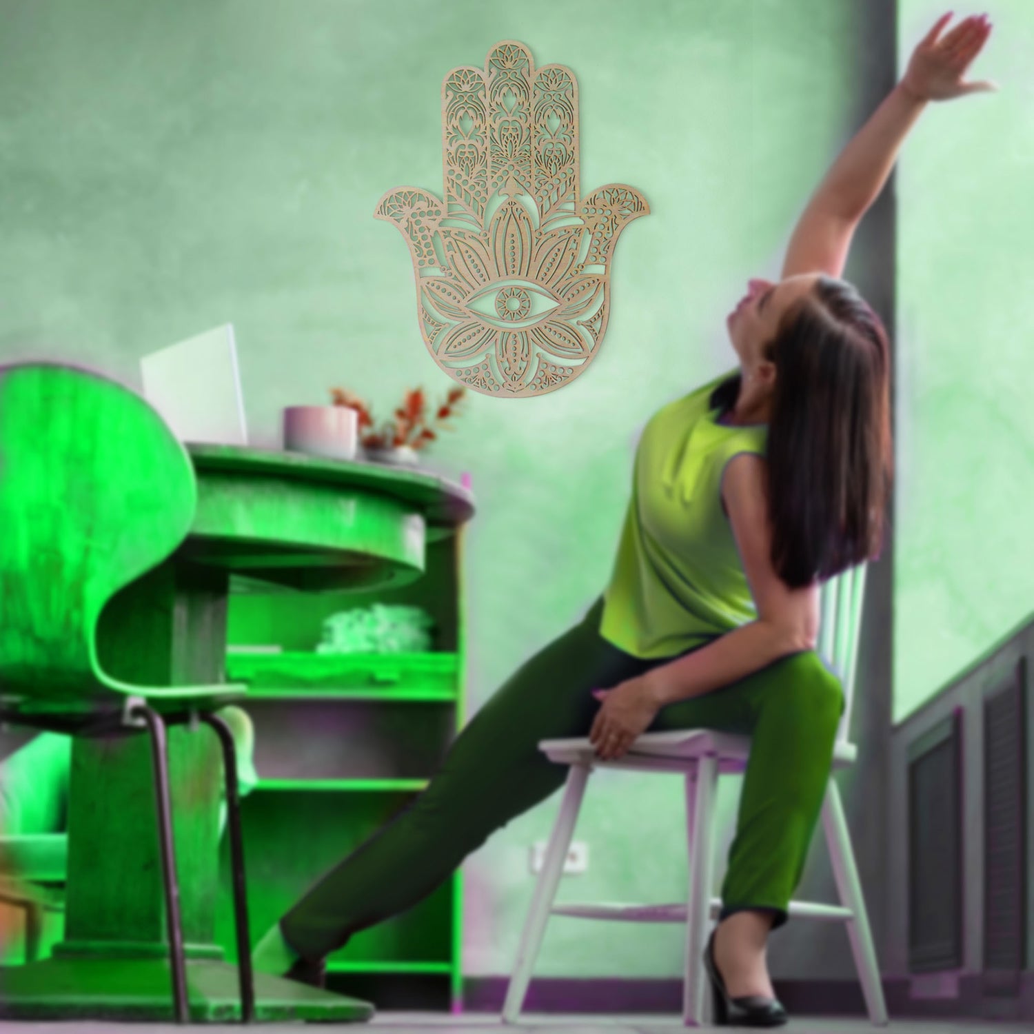 Đặt Hamsa trong phòng ngủ hoặc phòng khách để tạo không gian yên tĩnh và bảo vệ tinh thần trong không gian sống hàng ngày.